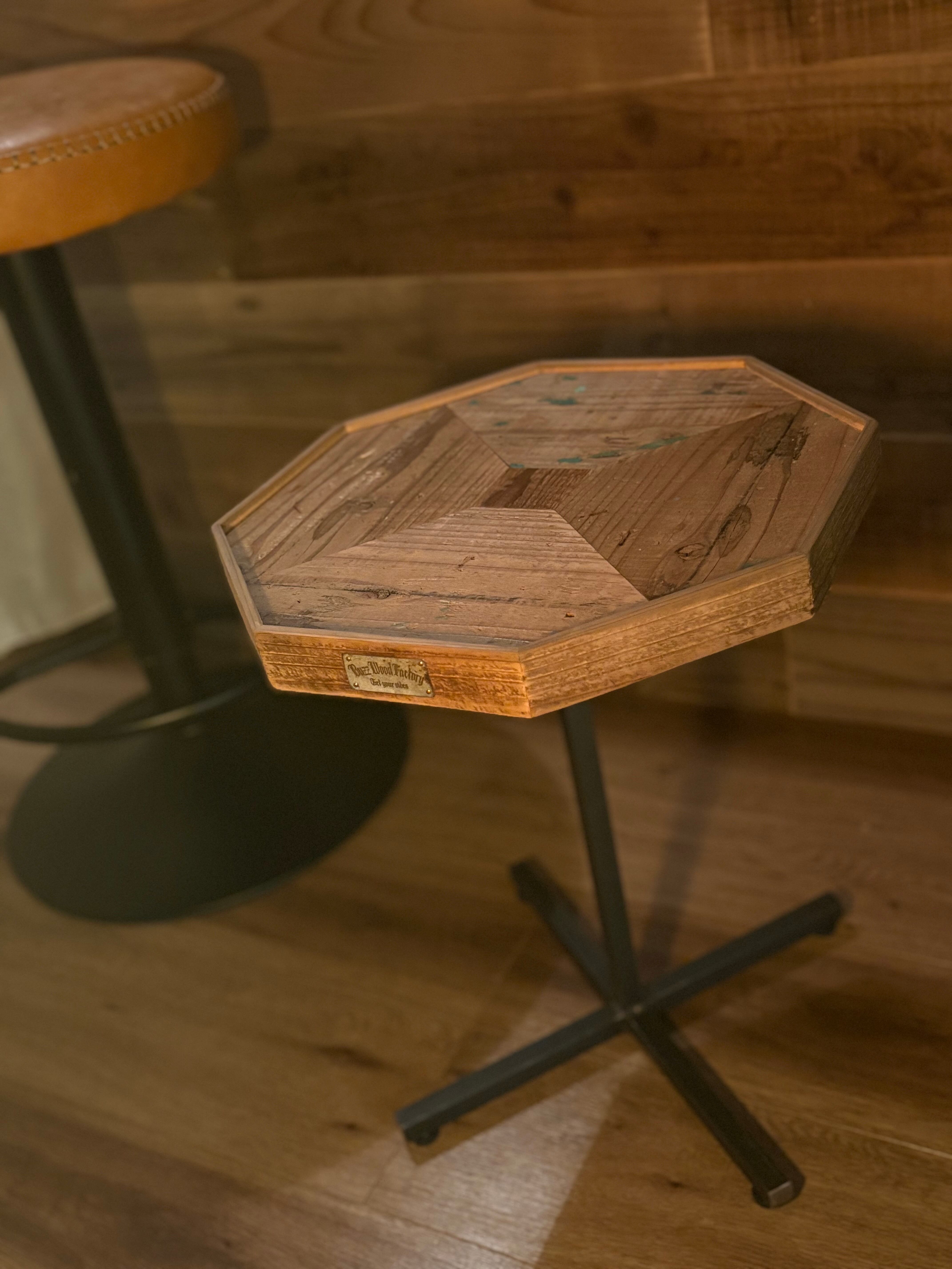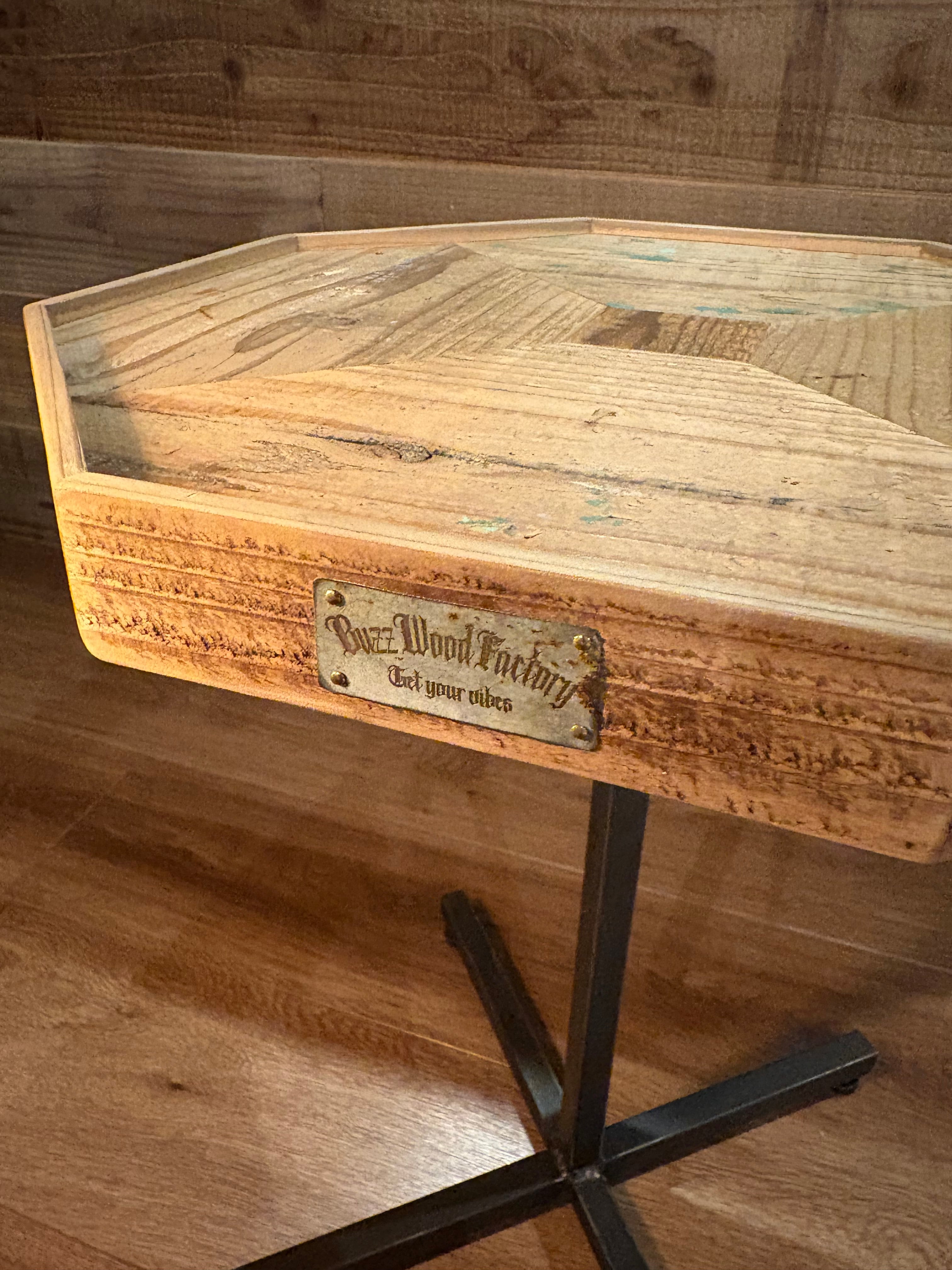 表情豊かな古材をアレンジしたエイジング感がリアルなテーブル天板。