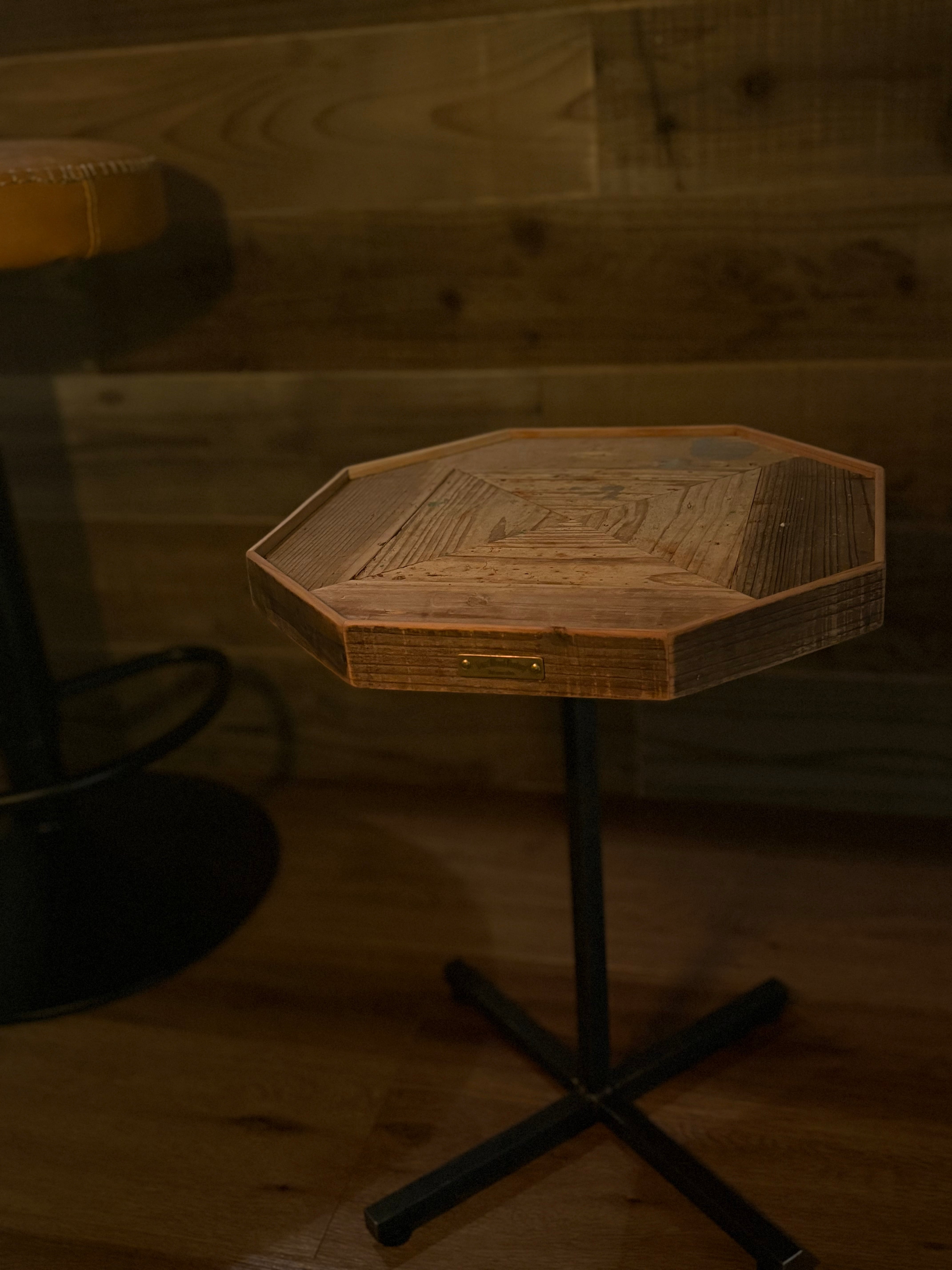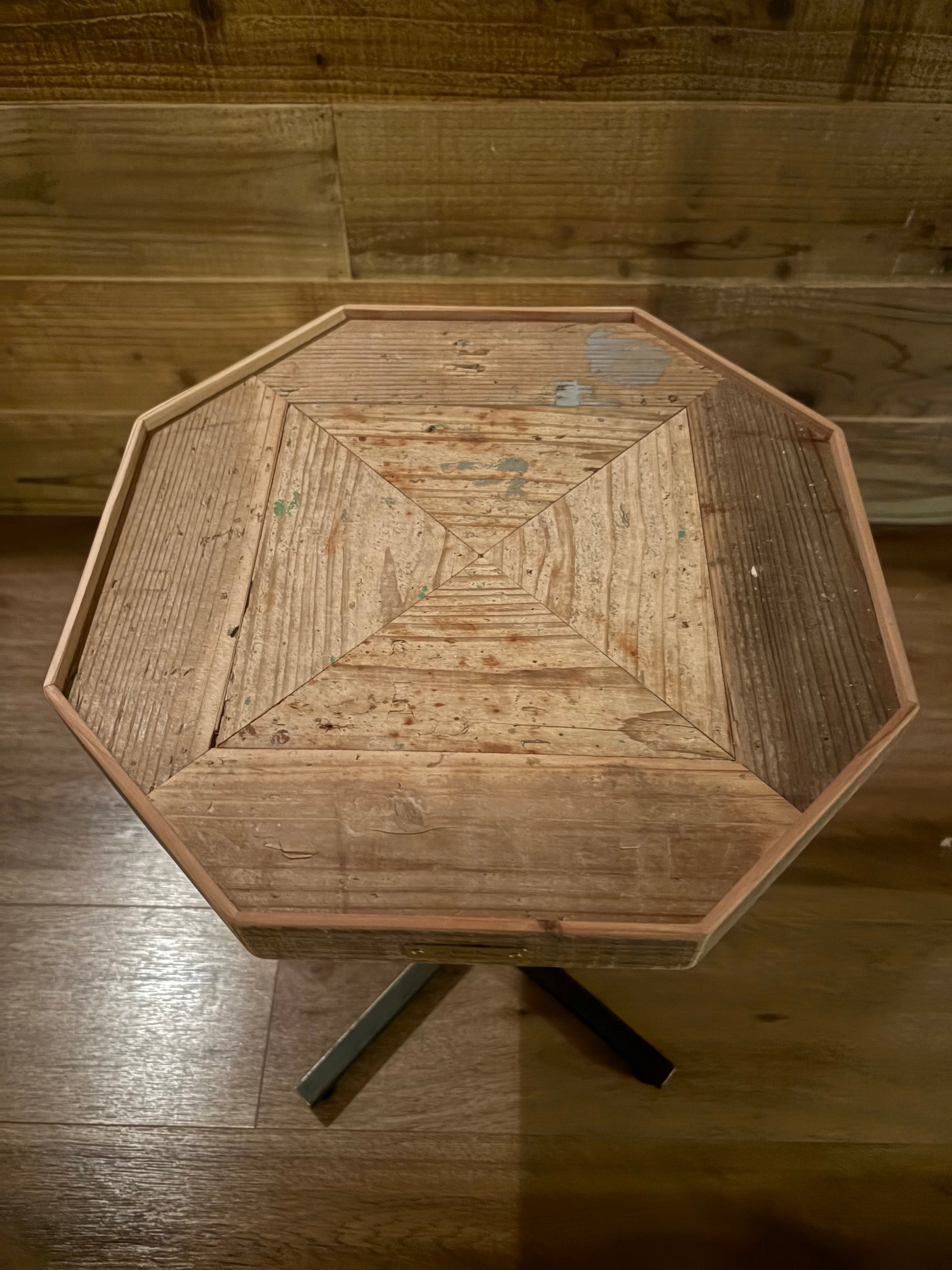 表情豊かな古材をアレンジしたエイジング感がリアルなテーブル天板。