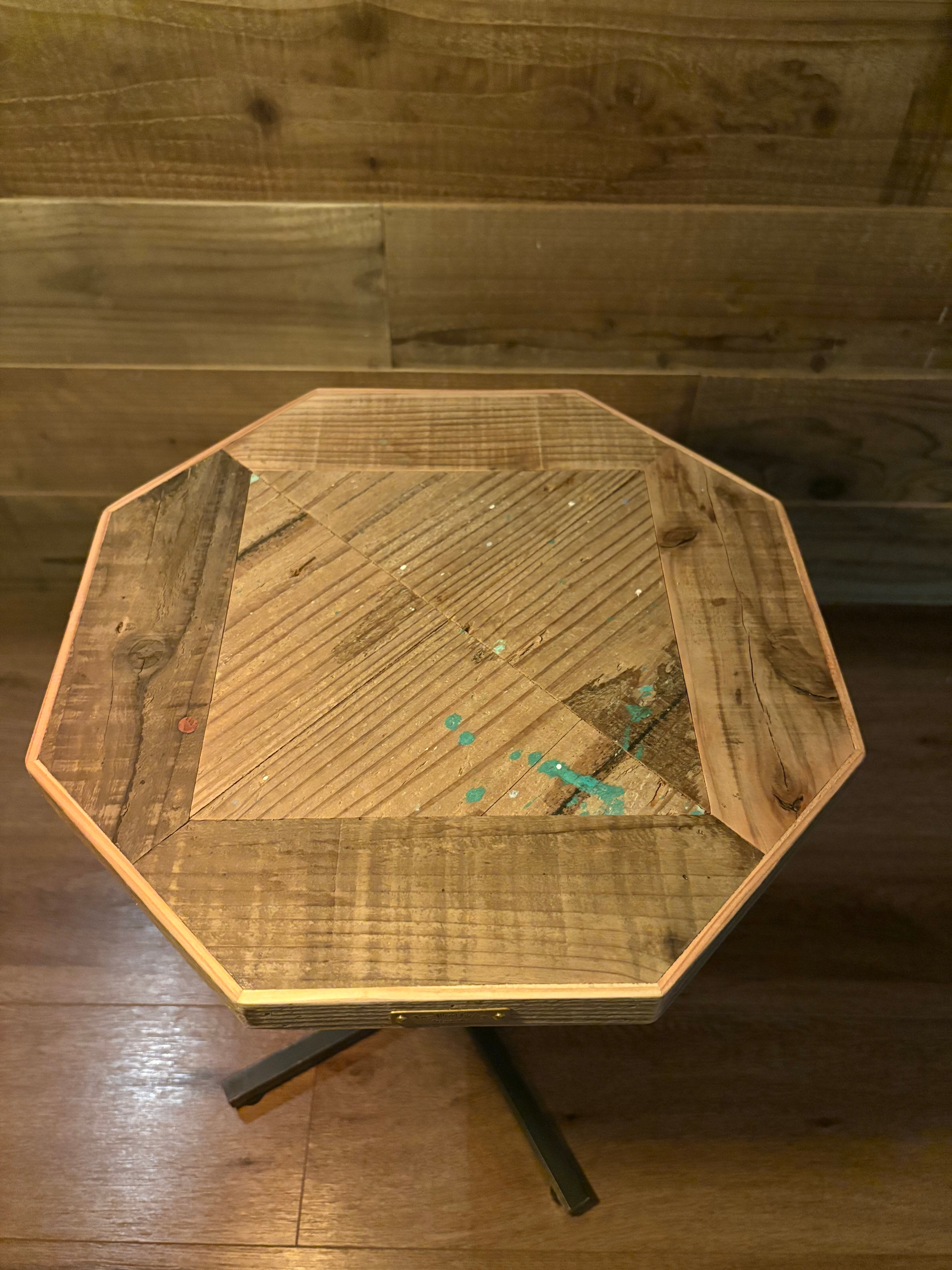 表情豊かな古材をアレンジしたエイジング感がリアルなテーブル天板。