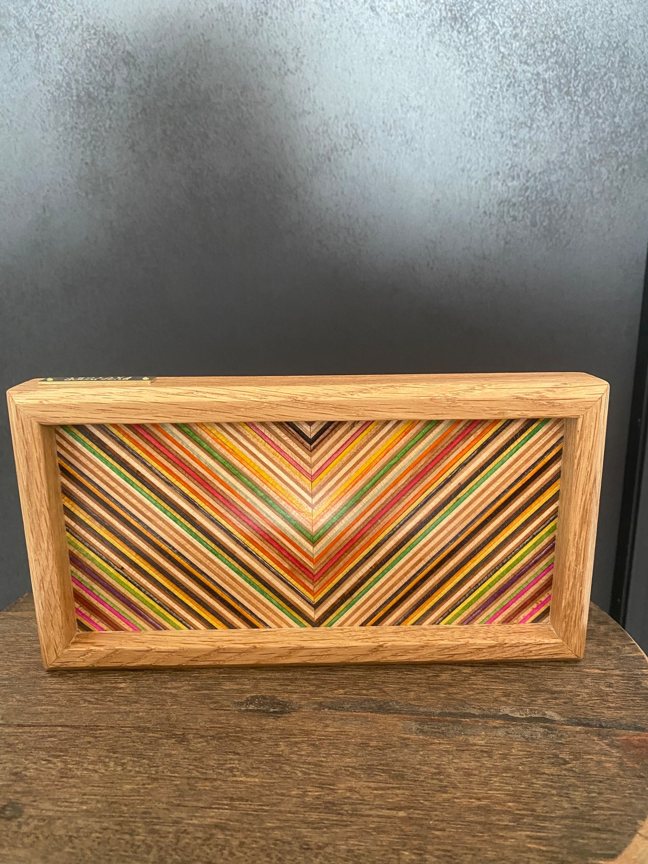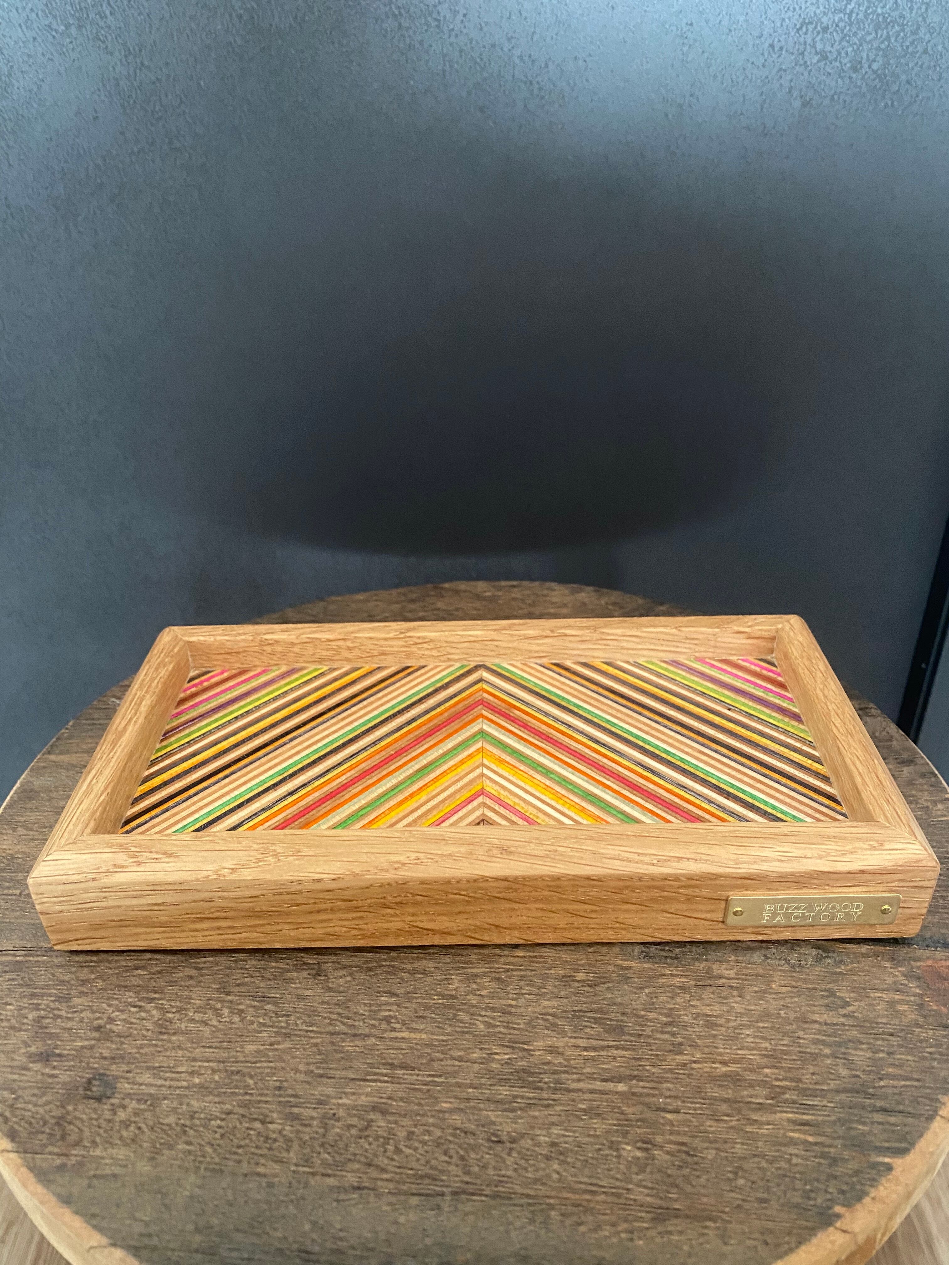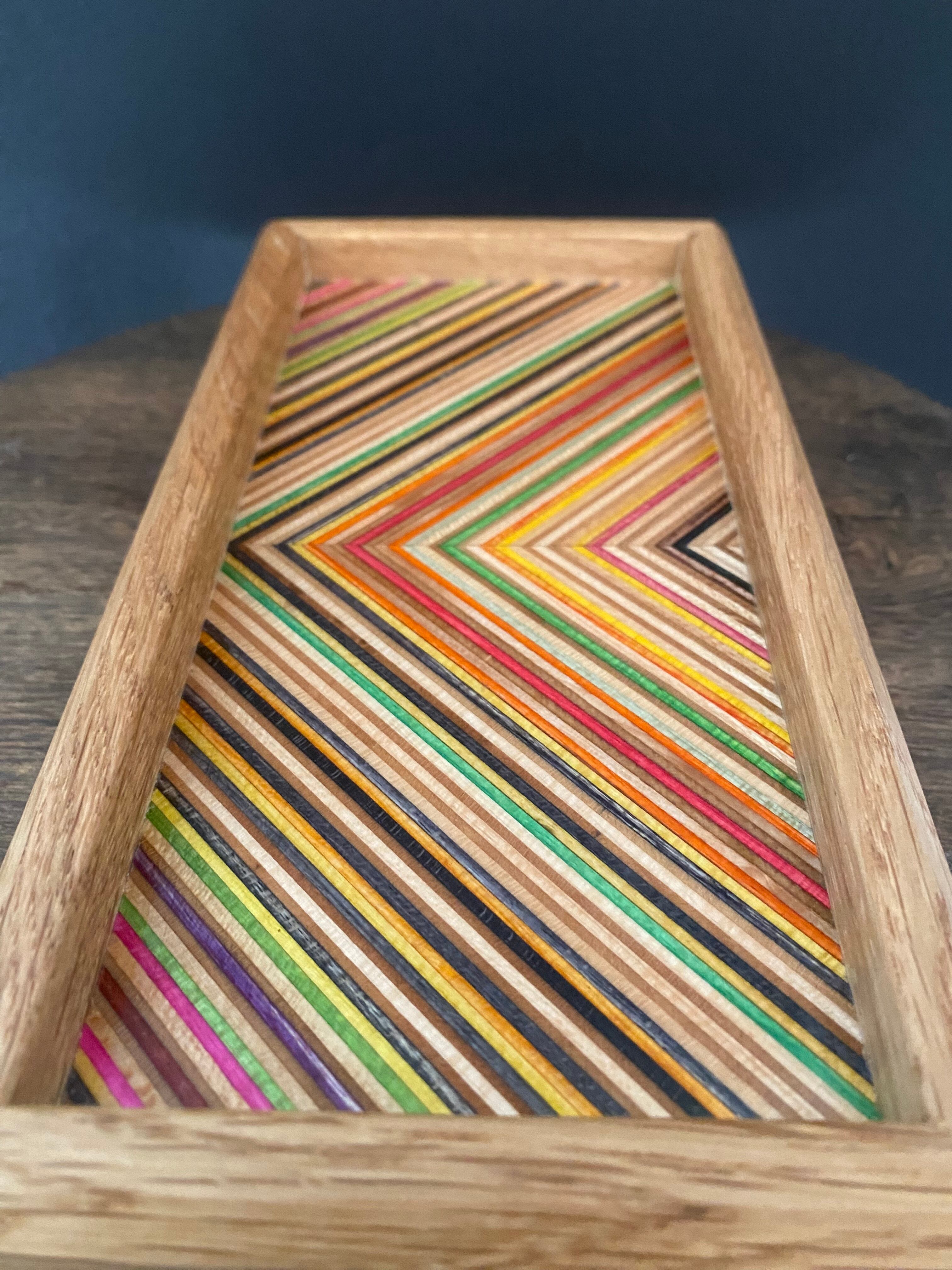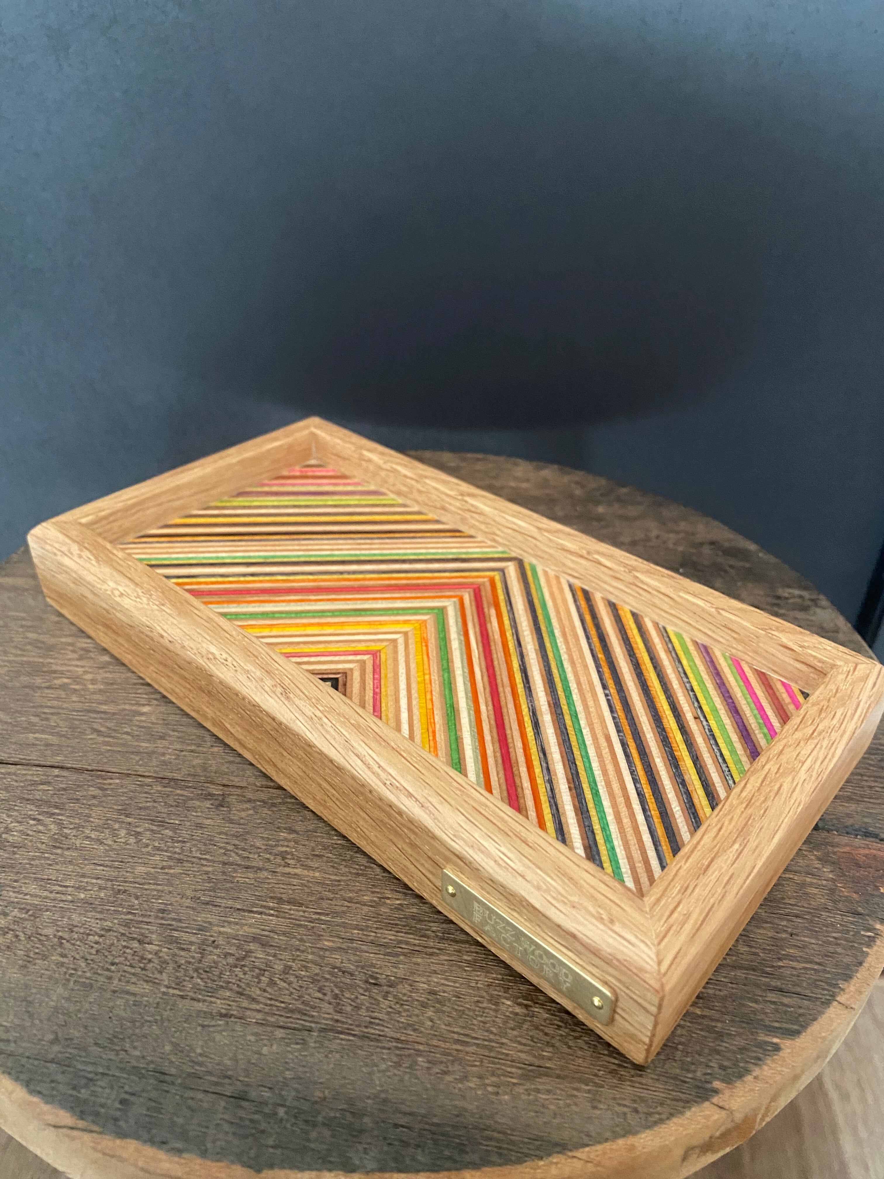皿面はウレタンコーティング、オークの縁はオイルコーティング。縁は経年変化、メンテナンスもお楽しみいただけます。