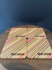 4枚のコースターを並べて色彩パターンを楽しむことができ、テーブルのちょっとしたアクセントとしても最適です。また仲間とシェアする事で、会えた時にだけできるパターンをお楽しみいただく事も魅力的なコースターです。