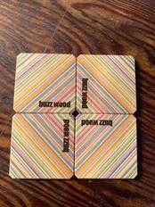 4枚のコースターを並べて色彩パターンを楽しむことができ、テーブルのちょっとしたアクセントとしても最適です。また仲間とシェアする事で、会えた時にだけできるパターンをお楽しみいただく事も魅力的なコースターです。